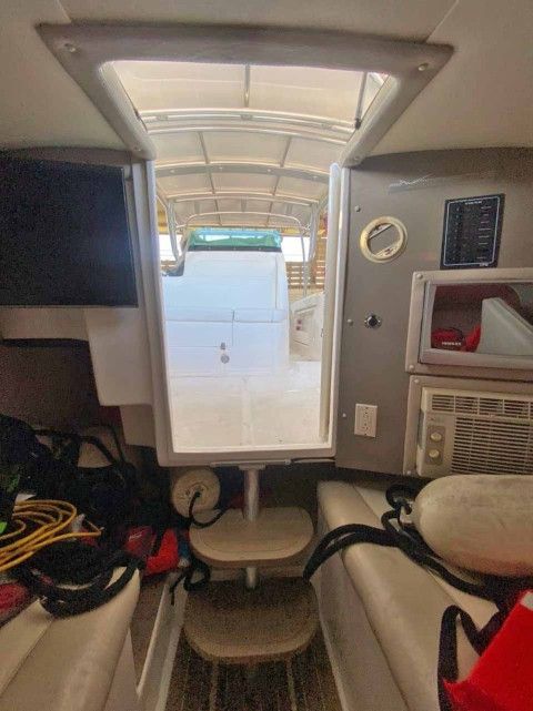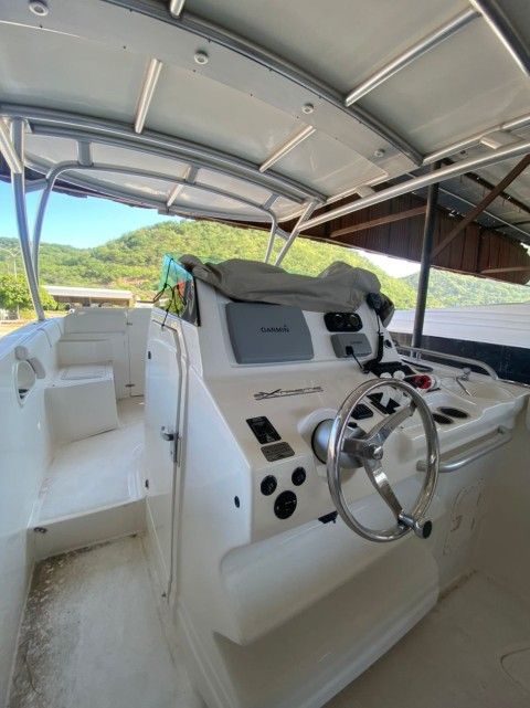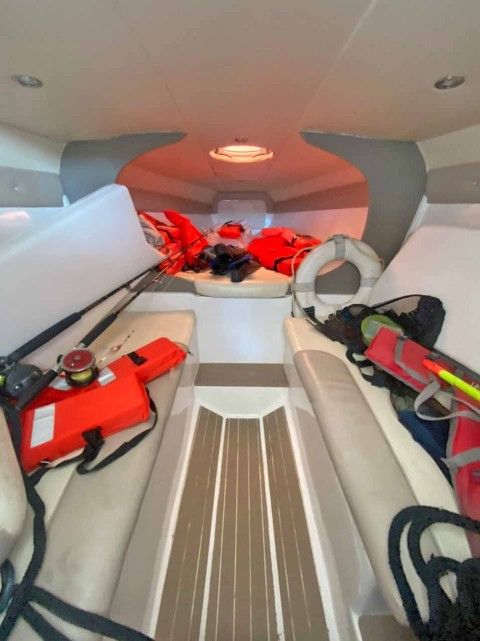 VHF Y GPS GARMIN, POCETA, WINCHE, FENDERS, CABOS DE MUELLE, SALVAVIDAS, LUCES DE CORTESÍA LED, LUCES DE NAVEGACIÓN, ANTIFOULING, 550 LTRS DE AGUA, 1200 GASOLINA, TECHO HARD TOP.