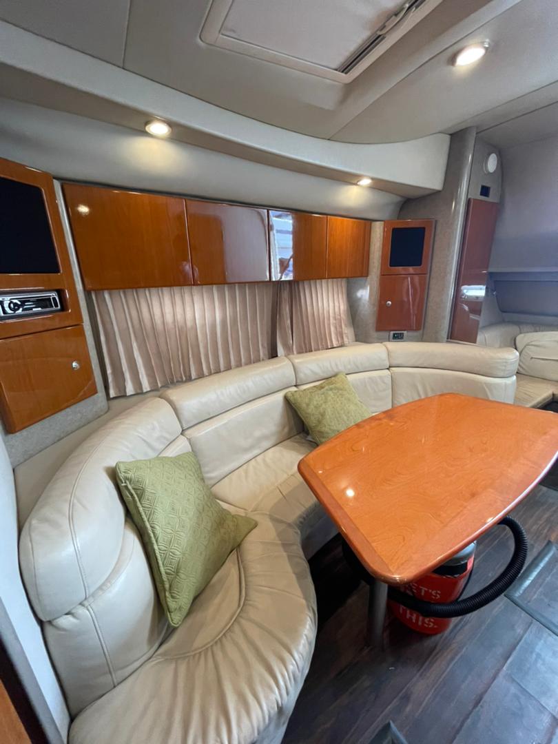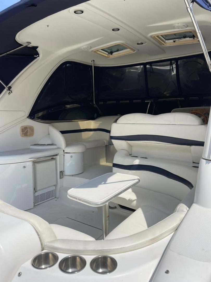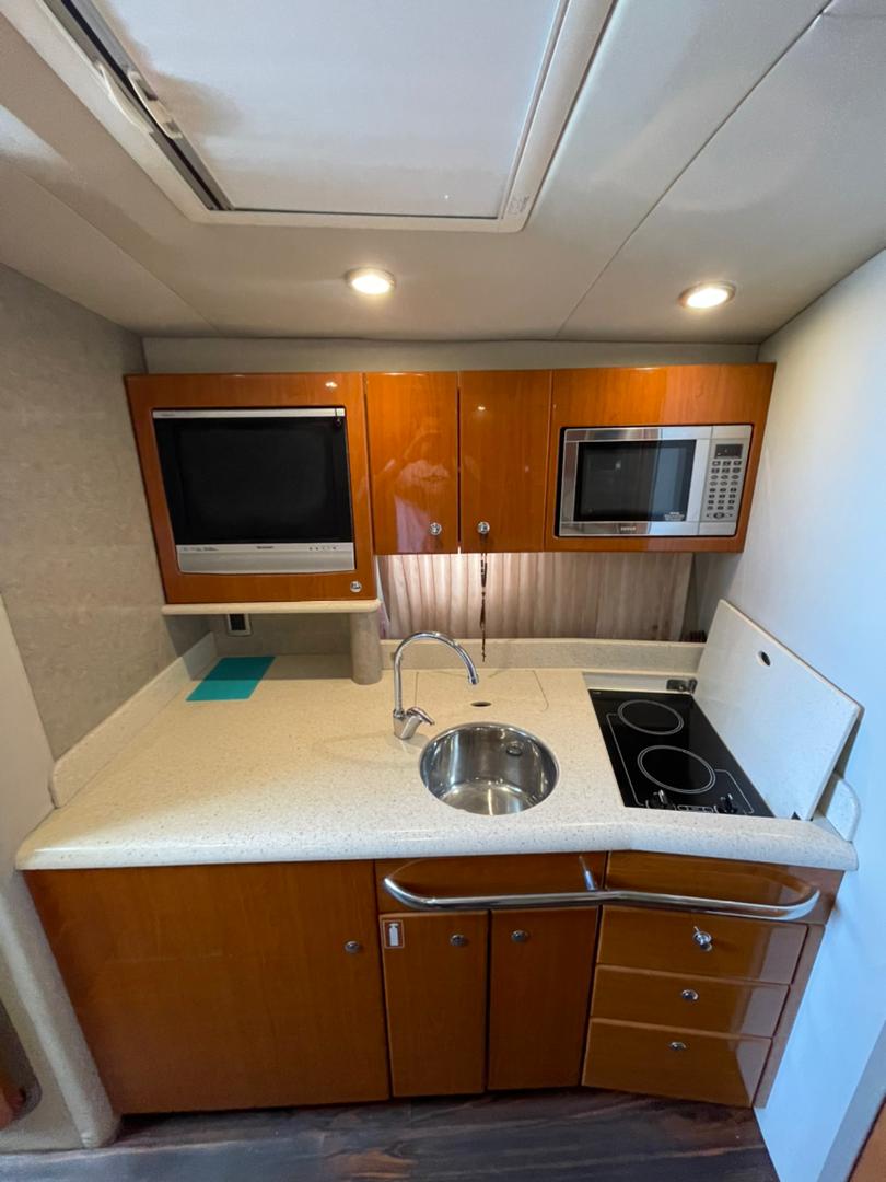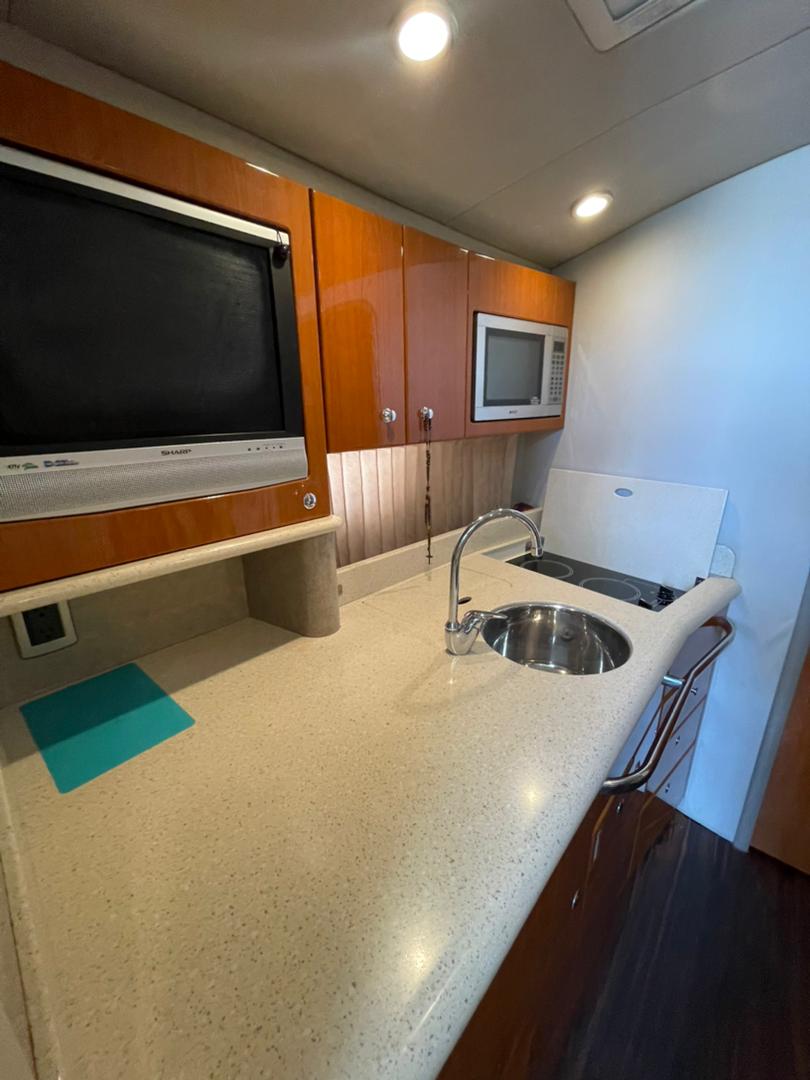TANQUE DE COMBUSTIBLE 236 GLNS, TANQUE DE AGUA 55 GLNS, 1 CAMAROTE PRIVADO, 1 CAMAROTE CONVERTIBLE, 1 BAÑO, PUEDEN DORMIR 6 PERSONAS, COCINA CON HERMOSO COUNTERTOP CORIAN, FREEZER, MICROONDAS, 2 HORNILLAS ELECTRICAS, LAVAPLATOS Y TAPICERÍA COLOR NATURAL DE ULTRA-LEADER, 2 AIRES ACONDICIONADO, SISTEMA CENTRAL DE ASPIRADO, PISO LAMINADO CON ACABADO DE MADERA, BAÑO Y DUCHA CON CERRAMIENTO, LAVAMANOS DE ACERO INOXIDABLE, ACCESO MOTORIZADO A SALA DE MÁQUINAS, WINCHE ELÉCTRICO LEWMAR, RAYMARINE E 80 8" CON GPS, RADIO VHF, CALENTADOR DE AGUA 120V, CARGADOR DE BATERÍAS DE 30 AMP, AUTOMATIC BILGE PUMP, ALARMA DE NIVEL DE AGUA EN SALA DE MÁQUINAS, TRIM TABS HIDRÁULICOS BENNETT.