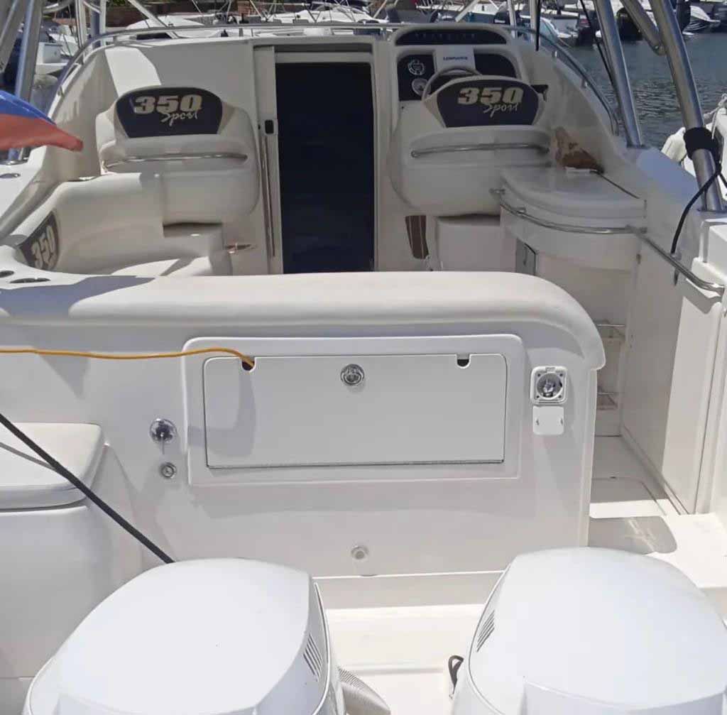 TRAILER 2 EJES RESTAURADO EN 2021, TECHO DURO HARD TOP CON CORNETAS Y LUCES EMPOTRADAS, WET BAR CON LAVACOPAS, COCINA VITRO CERAMICA, CAVA FREEZER CONGELADOR 1/4HP PARA 8 BOLSAS DE HIELO, NEVERA MARINA 12/110V, AIRE ACONDICIONADO MARINO DE 5.000BTU CENTRAL, BAÑO COMPLETO, LUCES DE LED LUMITEC DE CORTESIA, LUCES LED EN AREA SOCIAL, CAMAROTE Y UNDERWATER, TV 42”, BLUE RAY /DVD, EQUIPO DE SONIDO KENWOOD (2 PLANTAS, 6 CORNETAS, 1 BAJO JL AUDIO), MICROONDAS, RADIO, GPS LAWRENCE, EQUIPO AIS NUEVO CLASE A, VHF CON ANTENA, RELOJERÍA DIGITAL (ICOMAND) Y MANDO OPTICO (SIN GUAYAS), 1 CARGADOR DE BATERIAS NOCCO 15AMP DE 3 BANCOS, 2 BOMBAS DE ACHIQUE CON AUTOMATICO, ANCLA CON CADENA DE ACERO INOX, ANCLA ADICIONAL REJERA, 4 BATERIAS NUEVAS AÑO 2022, PORTACAÑAS, PORTAVASOS, VARIOS ENCHUFES 12V Y 110V, 6 CABOS, 4 FENDERS, 8 SALVAVIDAS, PARRILLERA MAGMA ACERO INOX, DOCUMENTACION VIGENTE HASTA 2024, FORRO COMPLETO.