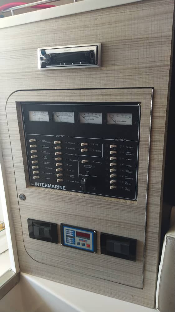 4 BATERÍAS, GASOLINA 1.000 LITROS, AGUA 200 LITROS, WINCHE, GPS, COCINA, MICROONDAS, SONIDO BASICO, TV, DVD NEVERA, FREEZER, LUCES AQUALED EN POPA Y TECHO.