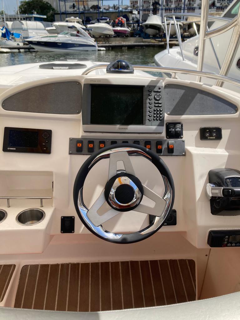 WINCHE, SONIDO JL AUDIO, 8 CORNETAS, 3 SUBWOOFER, REPRO FUSIÓN, GPS, AIS, TAPICERÍA CUSTOM, NEVERA, A/A, LUCES CORTESÍA LUMITEC 4 COLORES, LUCES UNDERWATER, ESTABILIZADORES LENCO, TV, TODO 100% OPERATIVO, SIN DETALLES SERVICIOS CON YAMAHA.