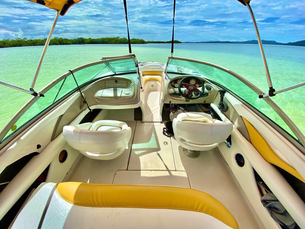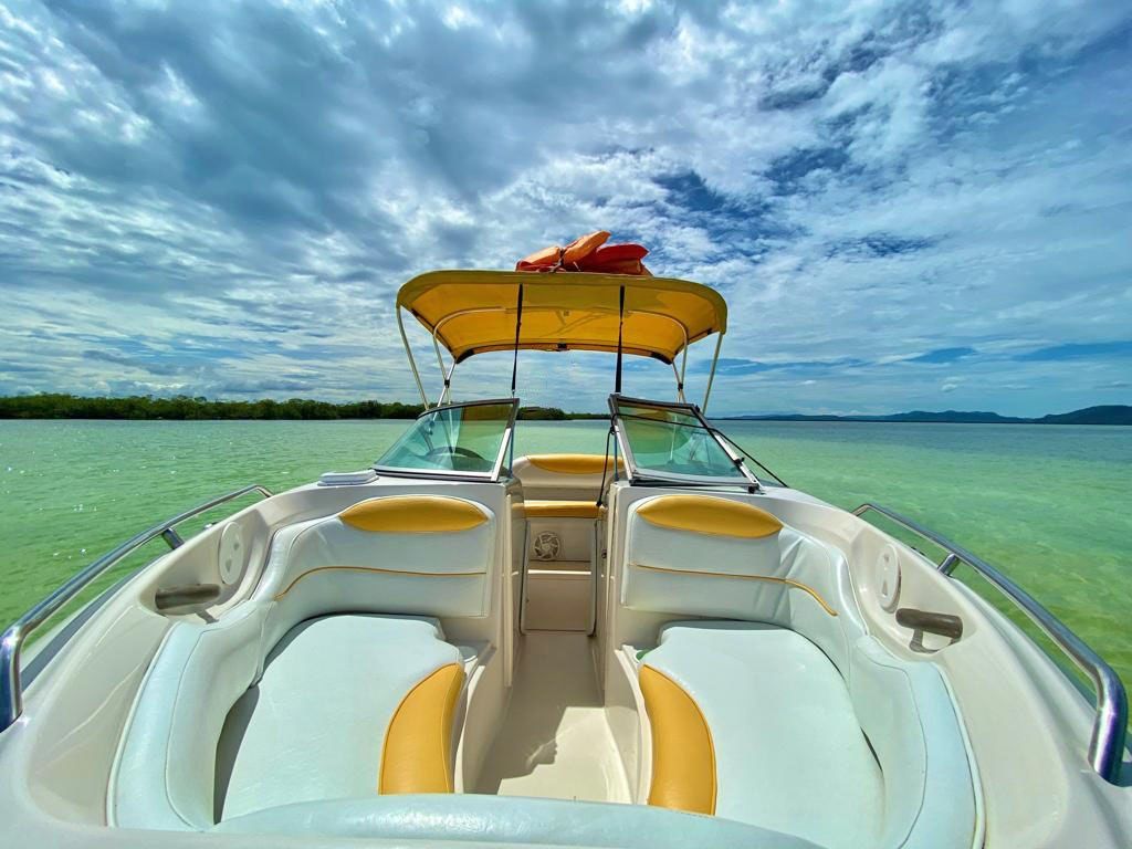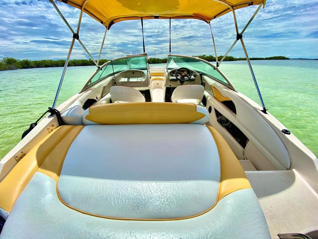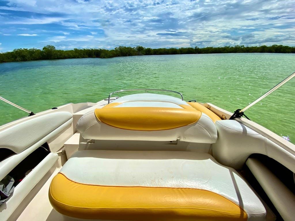 TAPICERIA NUEVA, SONIDO NUEVO, MOTOR CON MANTENIMIENTO AL DIA, RECIEN PULIDA, PAPELES AL DIA, 2 BATERIAS, 2 ANCLAS, 7 SALVAVIDAS, CALCOMANIA DE INPARQUE.