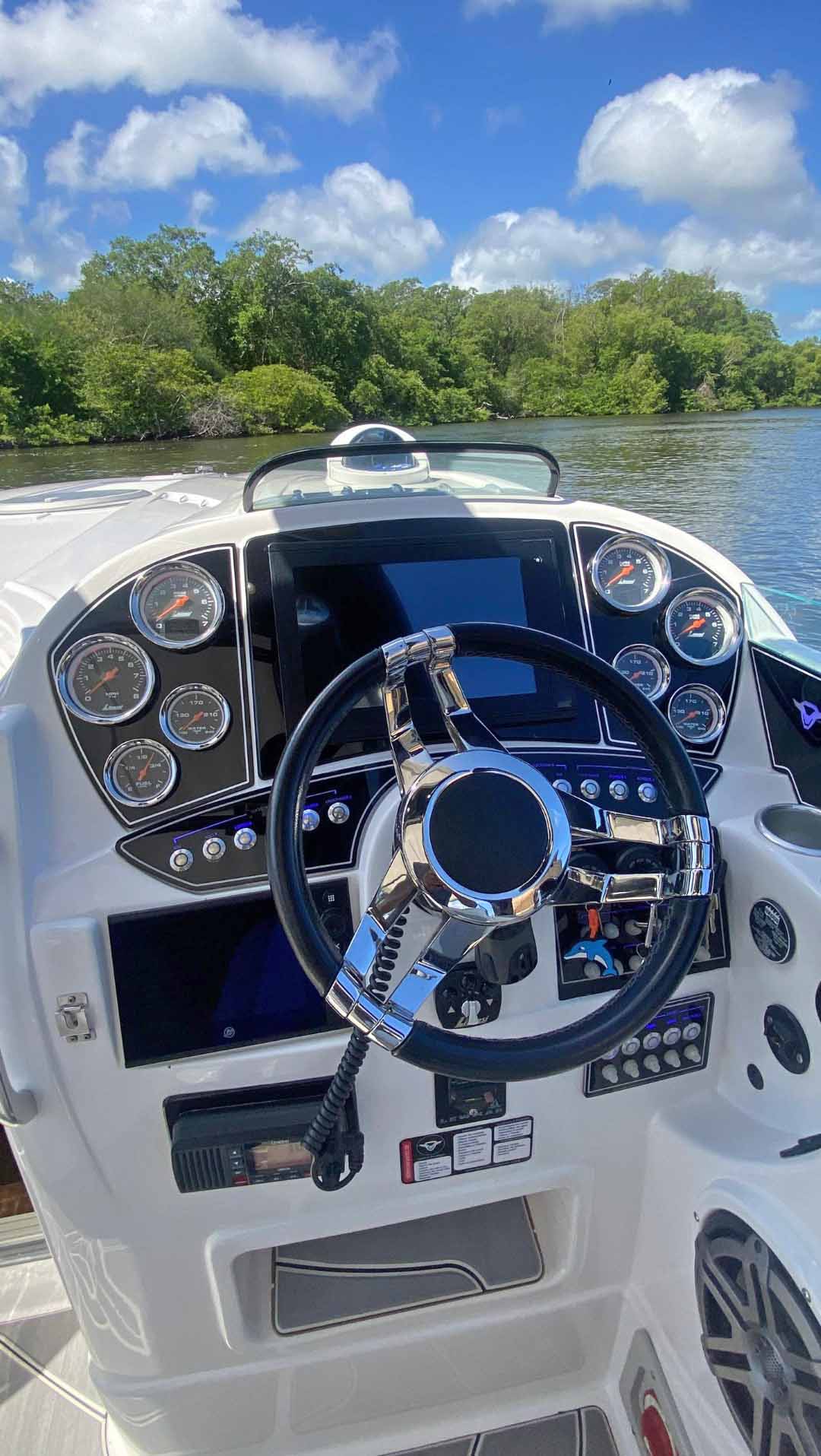 RELOJERÍA LIVORSI BOW THRUSTER, 1 CAMAROTE, 1 BAÑO, SONIDO JL AUDIO (10 CORNETAS Y 5 BAJOS), TOLDO, SEA DECK, LUCES DE CORTESÍA, LUCES UNDERWATER, TAPICERÍA EN EXCELENTE ESTADO, LANCHA GUARDADA BAJO SOMBRA, TV, MICROONDAS, NEVERA, PLANTA ELECTRICA ONAN 300 HRS