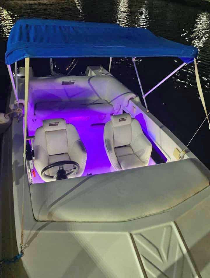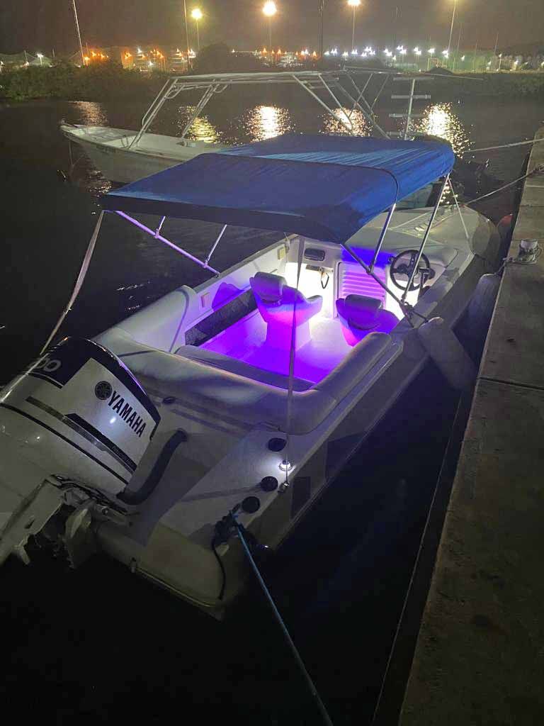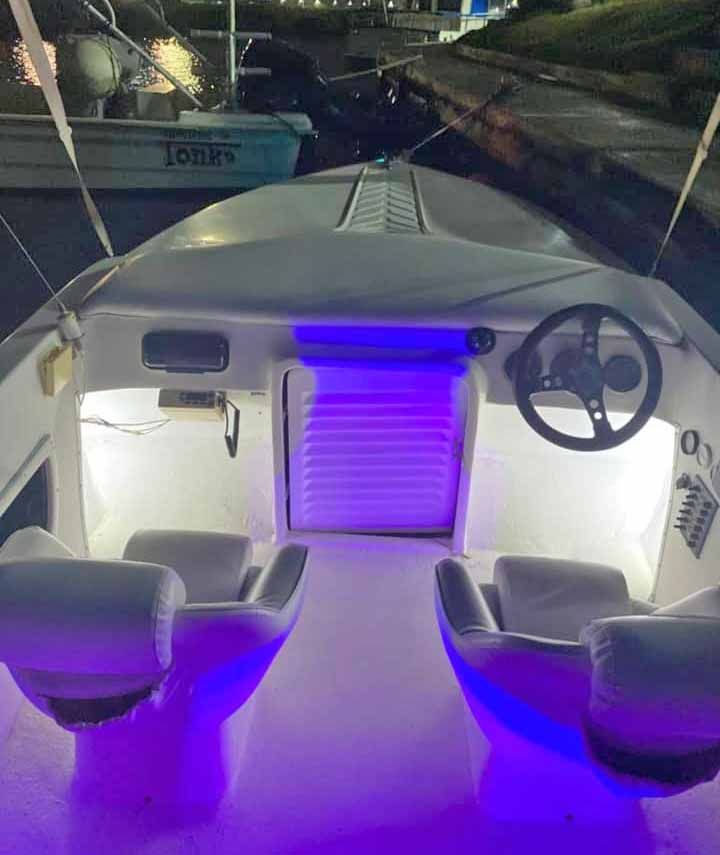 LUCES LED EN TODA LA LANCHA, SONIDO, 2 ANCLAS, 2 BOMBAS DE ACHIQUE, 4 FENDER, ANTIFOLIO (CASCO), 2 TANQUES DE GASOLINA, 1 TANQUE DE AGUA.