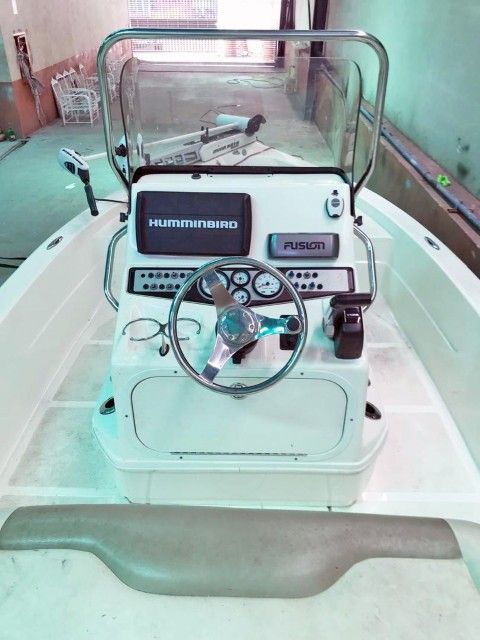 TAPICERÍA EN EXCELENTE ESTADO, REPRODUCTOR FUSION CON 4 CORNETAS, ANCHOR TALÓN MINKOTTA Y FORRO COMPLETO, TODOS LOS PAPELES AL DÍA, DEBIDAMENTE NACIONALIZADA, POSEE TROLLING MINKOTTA DE RIPTIDE DE 36V 112 LIBRAS Y FISHFINDER HELIX9 HUMMINBIRD DE 9 PULGADAS
