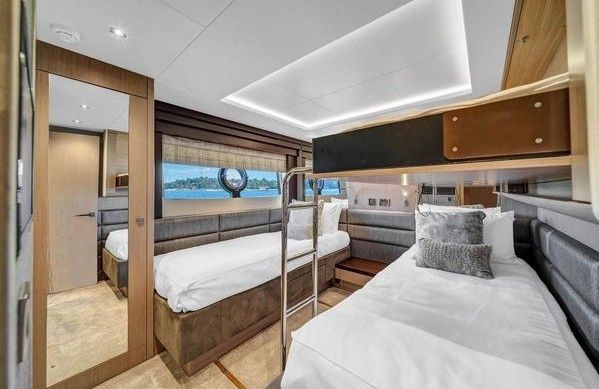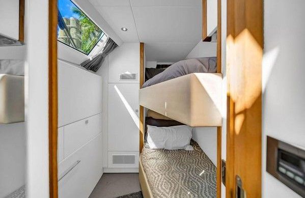 TANQUE DE COMBUSTIBLE 2.907GLNS, TANQUE DE AGUA DULCE 370GLNS, 4 CAMAROTES, 4 BAÑOS, RADAR, GPS SIMRAD