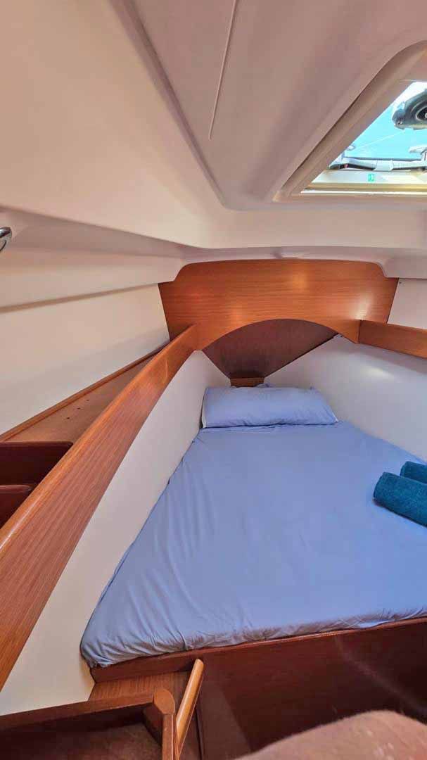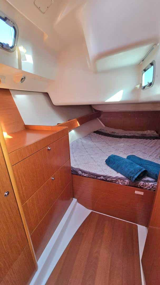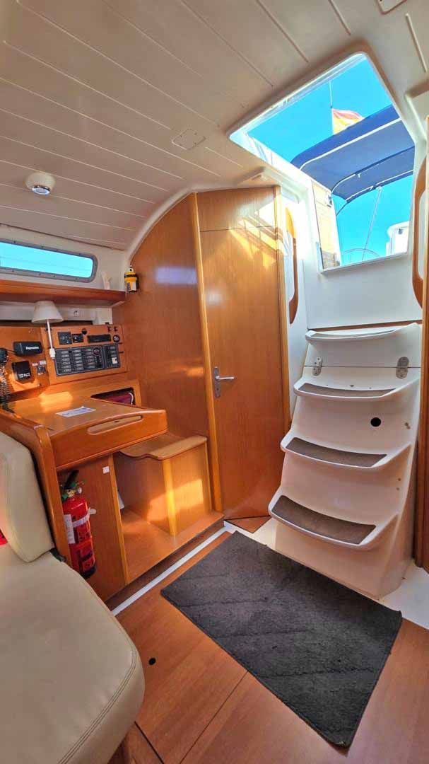 CAPACIDAD PARA 8 PERSONAS, 3 CABINAS, 2 BAÑOS CON DUCHA, CAPACIDAD DE AGUA DULCE 320 LTRS, CAPACIDAD DE COMBUSTIBLE 220 LTRS, EQUIPO DE VIENTO, CORREDERA, SONDA, PLOTTER, PILOTO AUTOMÁTICO, RADIO VHF RAY 49F, REPRODUCTOR DE CD, GPS, CARGADOR DE BATERÍAS, MOLINETE ELÉCTRICO CON FONDEO COMPLETO, BATERÍAS DE SERVICIO Y MOTOR, ENCHUFES DE 12V Y 220V, BOMBA DE SENTINA ELÉCTRICA, ALARMA DE MOTOR, BOMBA DE PRESIÓN DE AGUA, BALSA SALVAVIDAS, RECTIFICADOR DE VOLTAJE, CABRESTANTE, EQUIPO DE CUBIERTA, 4 WINCHES, PLATAFORMA DE BAÑO ABATIBLE CON ESCALERA DE BAÑO Y DUCHA, MESA BAÑERA, BAÑERA EN TECA, SOPORTES DE MOTOR FUERABORDA, BIMINI, ANTI ROCIONES, SALÓN CON COCINA Y HORNO A GAS, NEVERA CONGELADOR ELÉCTRICA, VELAS MAYOR (35,52 MQ), GENOA (29 MQ), JIB FURLING SYSTEM, LAZY BAG, DOCUMENTACIÓN AL DÍA, MANTENIMIENTOS AL DÍA