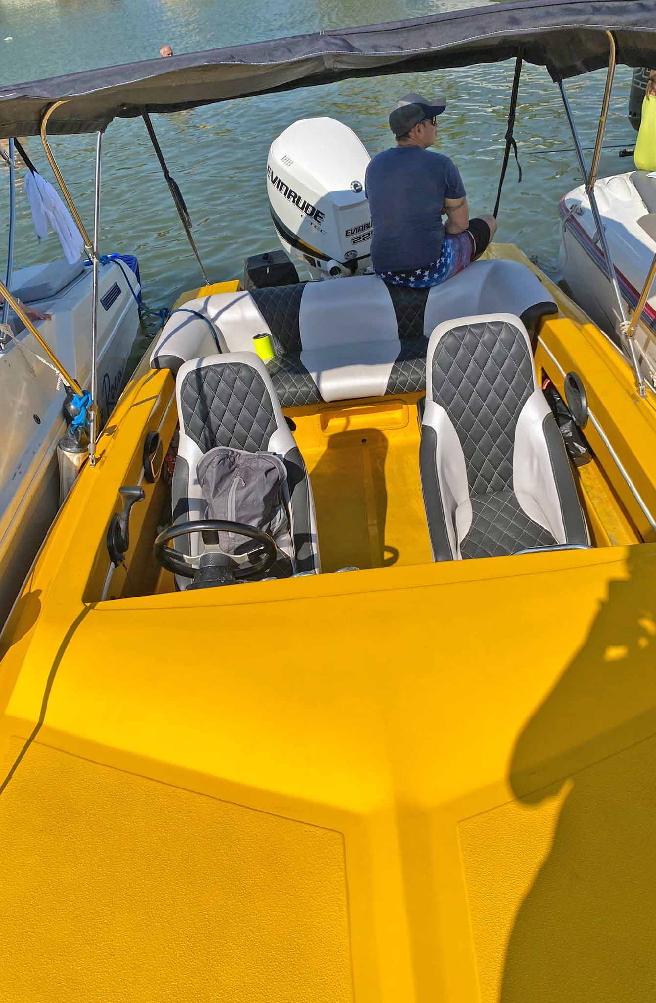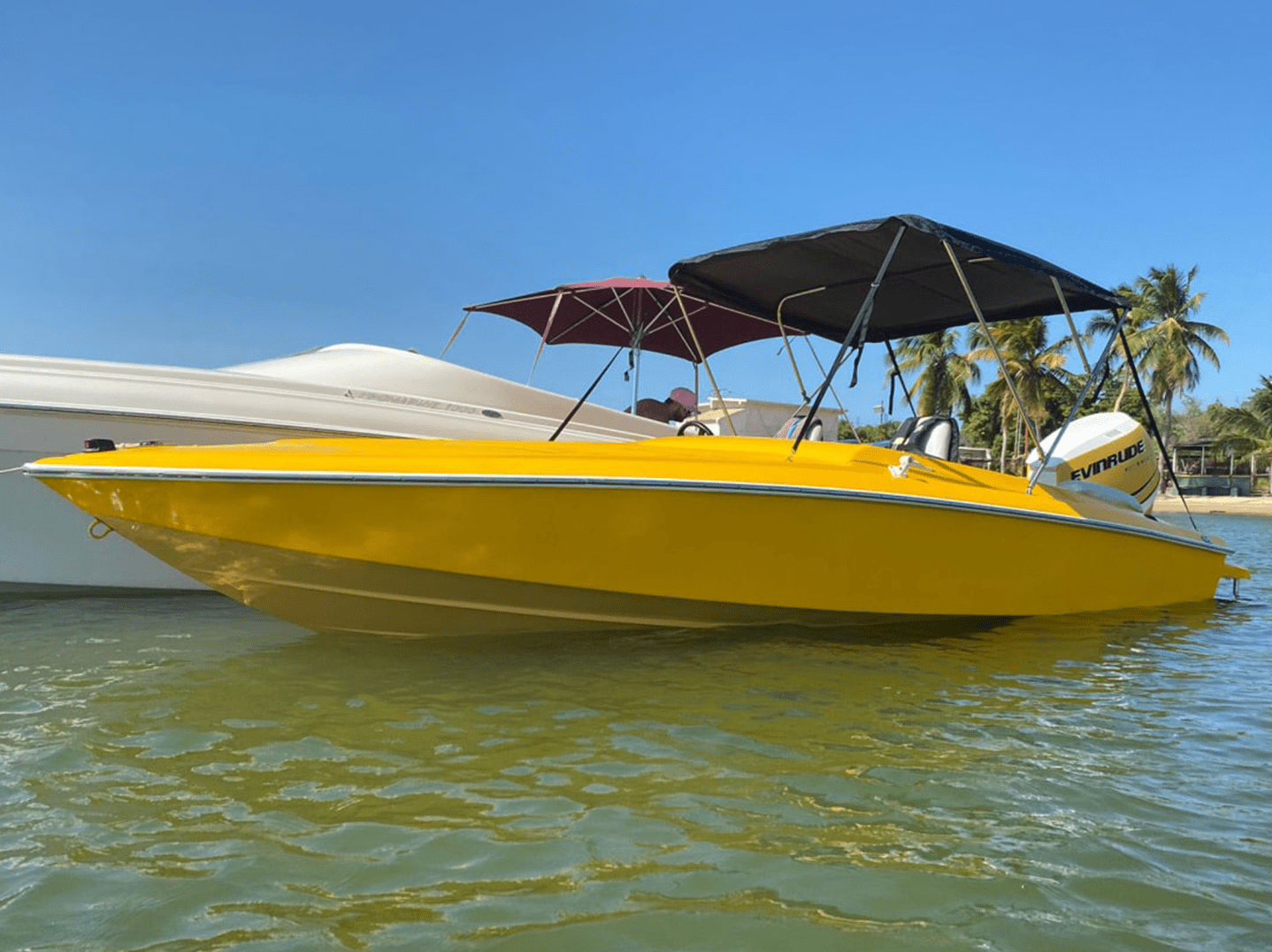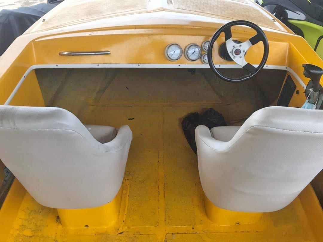 LUCES DE CORTESIA, ANCHA DELANTERA, 2 DEFENSAS, 4 CHALECOS SALVAVIDAS, TAPICERIA NUEVA, PINTURA DEL MOTOR NUEVA, INCLUYE SONIDO.