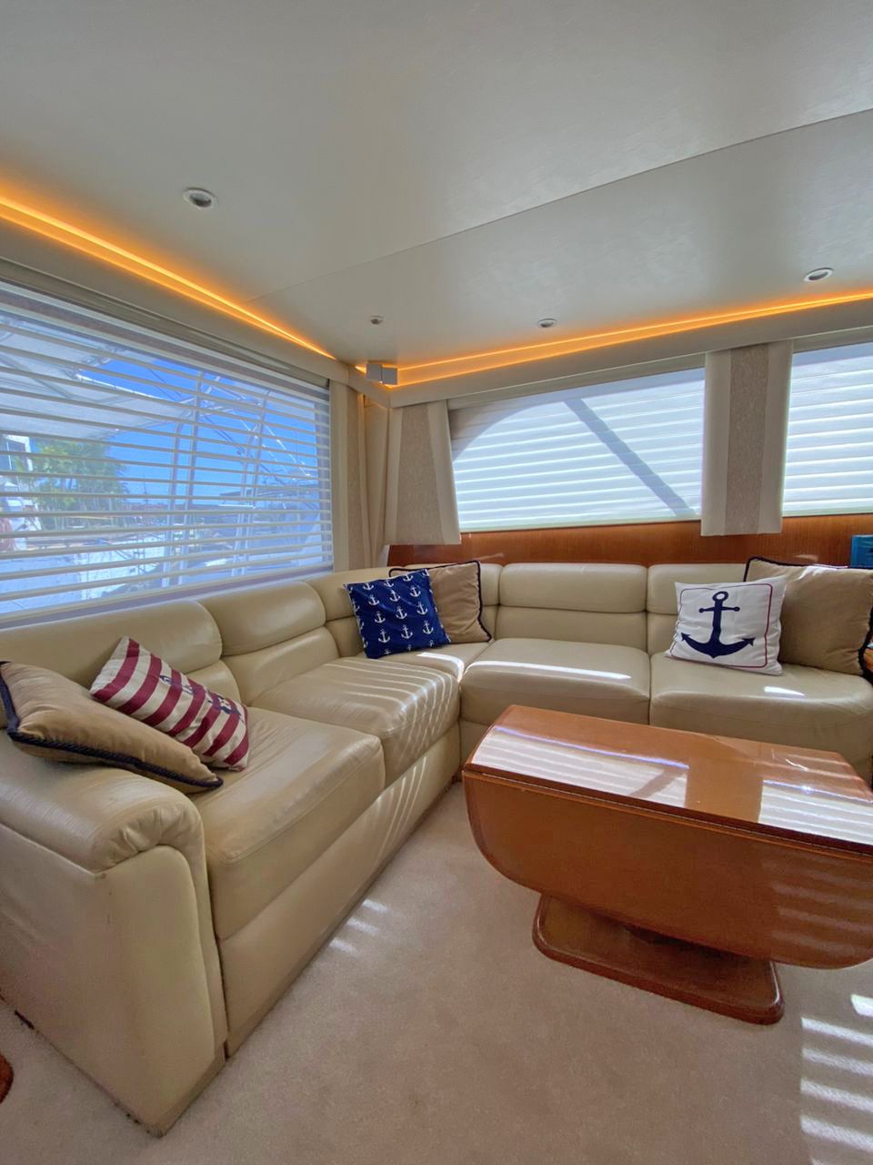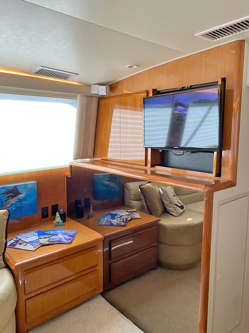 TAPICERÍA Y ALFOMBRAS EN PERFECTO ESTADO, 2 CAMAROTES, 2 BAÑOS, COCINA Y SALÓN, 2 TV CON DIRECTV, 2 GPS GARMIN DE PANTALLA TÁCTIL, ANTENA SATELITAL PARA DIRECTV, RADAR, PILOTO, AUTOMÁTICO, 2 RADIOS VHF, TANQUE DE AGUA DE 300 LTRS, TANQUE DE COMBUSTIBLE DE 2376 LTRS, WINCHE Y ANCLA DE PROA, GRÚA Y BASES PARA DINGHY EN PROA, DINGHY DE 10.5 PIES CON YAMAHA 15 HP, LUCES UNDERWATER, SONIDO COMPLETO JBL (1 REPRODUCTOR, 2 AMPLIFICADORES, 6 CORNETAS Y 1 SUB-WOOFER), DOCUMENTACIÓN AL DÍA INCLUYENDO AIS