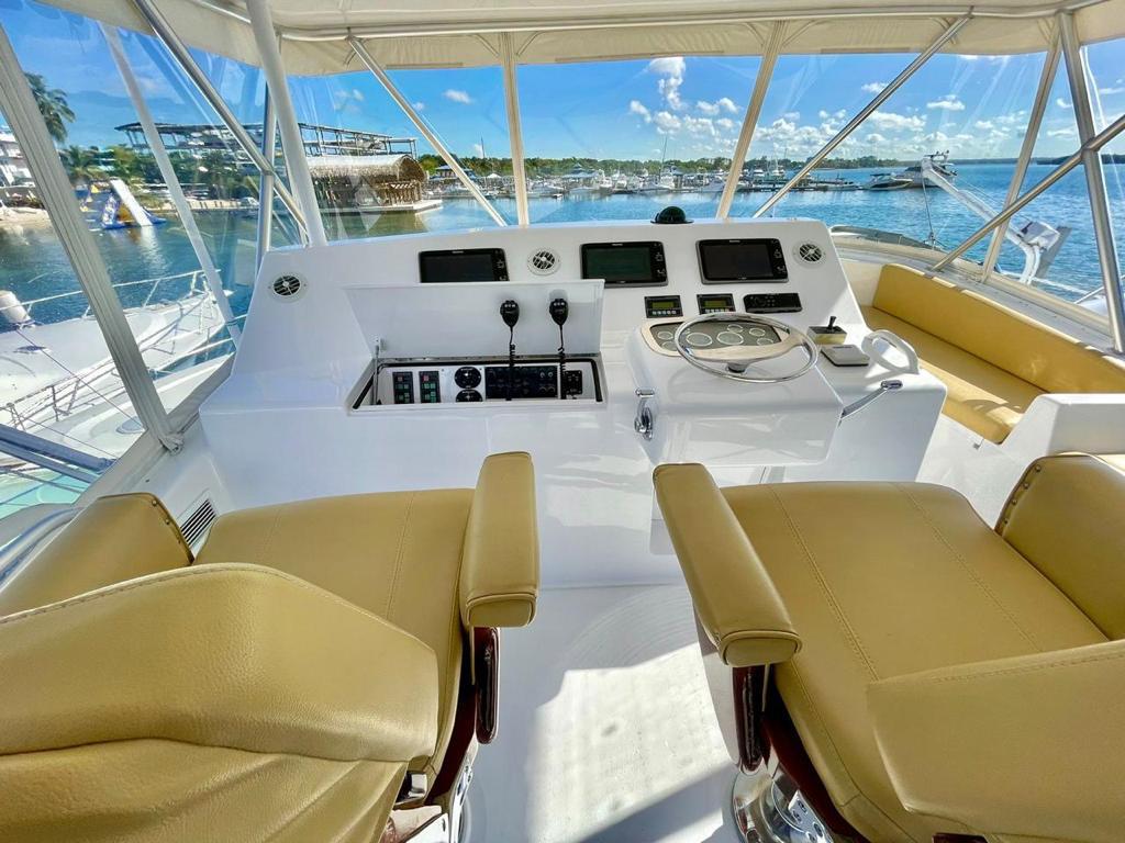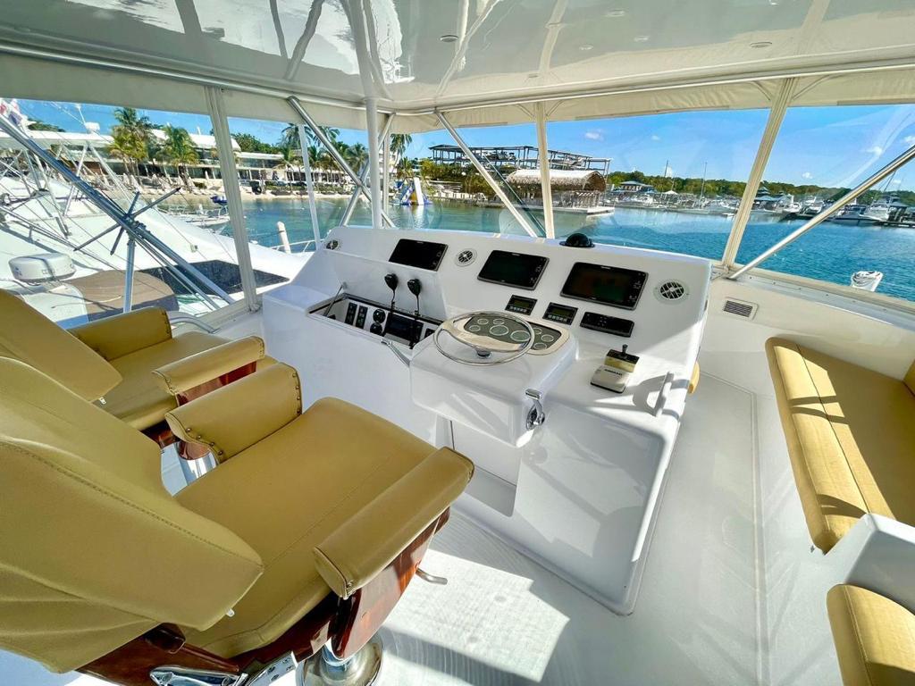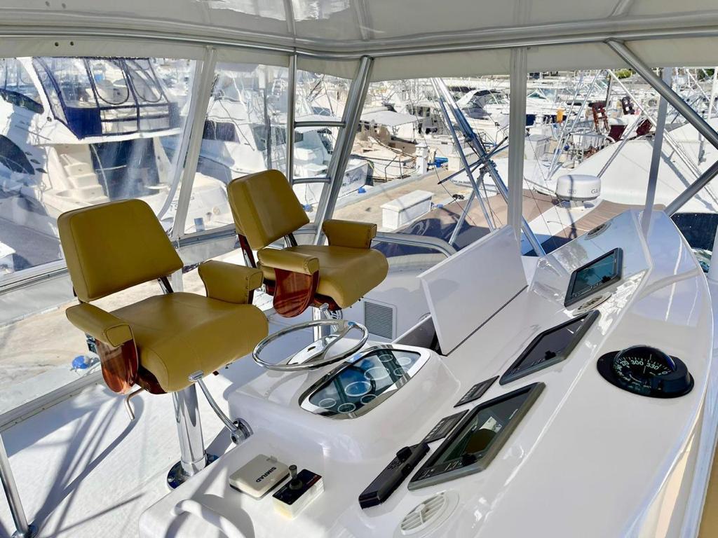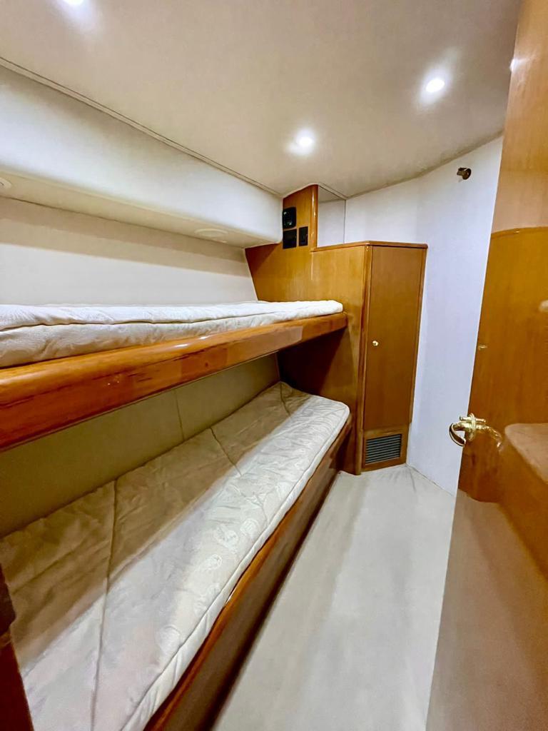3 CAMAROTES, 2 BAÑOS, 4 NEVERAS, 2 FREZZER, SISTEMA DE NAVEGACION GARMIN, PINTURA EXTERNA NUEVA COMPLETA AÑO 2022, TAPIZADO INTERNO DE CAMAROTES Y SALON NUEVO 2022, MADERA NUEVA 2022, SERVICIO DE MOTORES Y GENERADORES 2022, GRUA-DAVIT EN PROA, OUTRIGGERS MARCA LEE, LUCES UNDERWATER MULTICOLOR, JUEGO EXTRA DE PROPELAS ALINEADAS Y BALANCEADAS, BALSA SALVAVIDAS PARA 8 PERSONAS, PANEL ELECTRICO, PISO AMTICO EN ENTRADA, SOFÁ EN PIEL EN FORMA DE L CON DEPÓSITOS, MESA CENTRAL EN TEKA CON FORRO PROTECTOR EN PIEL, ILUMINACION LED BLANCA, COCINA DE CORIAN, TRITURADOR DE BASURA, FREGADERO EN CERAMICA CON GRIFO MARCA GROHE, COCINA DE 3 HORNILLAS MARCA KENYON, LAVADORA Y SECADORA MARCA WHIRLPOOL, 2 TELEVISORES PANTALLA PLANA, AIRE ACONDICIONADO, CARGADOR DE BATERIA, ELECTRÓNICA RAYMARINE, GPS RAYMARINE, PLOTER RAYMARINE, PANTALLAS DE MOTORES MAN, PANTALLA DE DESALINIZADORA, PILOTO AUTOMATICO DE SIMRAD, BRUJULA RITCHIE, BOMBA DE AGUA DULCE, BOMBAS DE ACHIQUE, SISTEMA CONTRA INCENDIOS AUTOMATICO, SELLOS DE EJE SIN GOTEO, SISTEMA DE CAMBIO DE ACEITE, FILTROS DE COMBUSTIBLE RACOR.